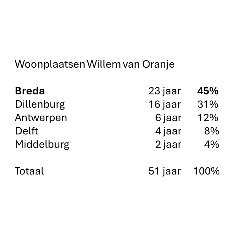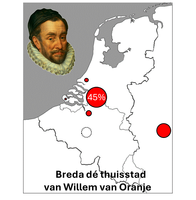 Thuisstad Geplaatst doorpauljanse oktober 29, 2025oktober 29, 2025 Bijna de helft (45%) van zijn leven woonde vader des vaderlands Willem van Oranje-Nassau in Breda. Voor zijn werk moest hij soms naar Brussel maar zijn vrouw en kinderen wachtten thuis op hem in het kasteel van Breda.